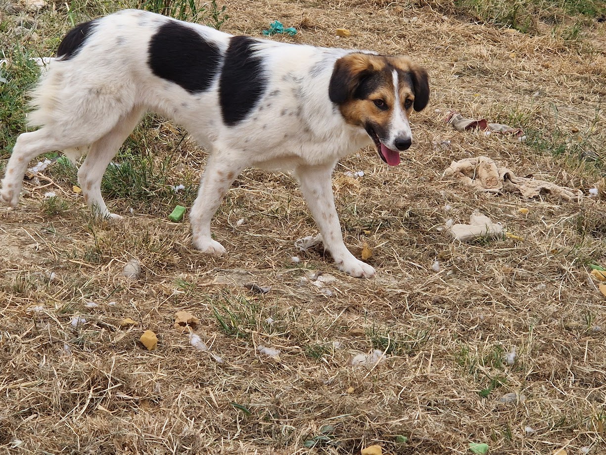 Margot heeft een prachtige dikke witte vacht met zwarte en beige aftekeningen, sproeten en een vlekkerig buikje! Een heel lief en vrolijk meisje, dat altijd lacht! Haar moeder is een middelgrote hond. Ze hebben geen idee wie haar vader was. Ze is middelgroot en weegt ongeveer 16 kg. Een herder mix zo te zien met die prachtige dikke vacht en pluizige staart!