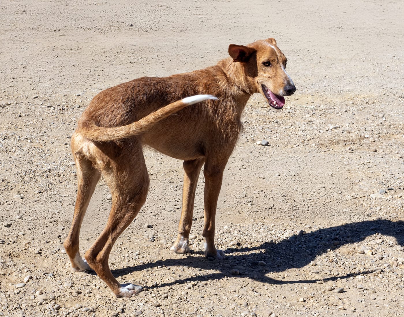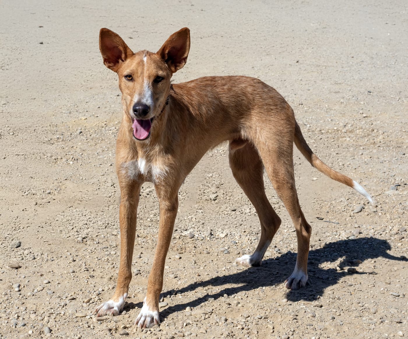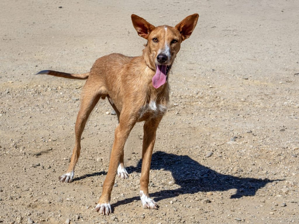 Hunter zat altijd vast dezelfde plek. Hij was erg bang en heeft waarschijnlijk nooit contact met mensen gehad. Hunter heeft inmiddels zoveel geleerd. Hij is nu zo’n vrolijke hond, soms nog een beetje verlegen voor nieuwe mensen en nieuwe dingen. Hij is erg vriendelijk en heeft nu geleerd hoe hij moet spelen. Aan de lijn lopen gaat heel goed. Hunter kan goed met andere honden omgaan en verblijft nu met Hettie in een kennel. Hunter’s schofthoogte is ca. 56 cm., gewicht is ongeveer 15 kg. Hij is gecastreerd. Omgang met kinderen en katten niet bekend.