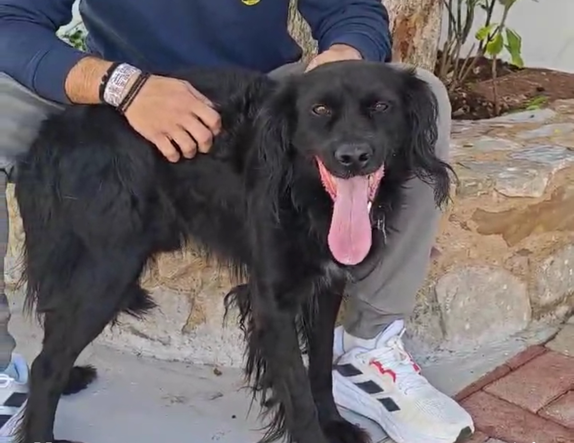 Na de branden werd Derk ontdekt, vastgebonden in een leeg gebouw. Het is een wonder dat hij het overleefd heeft. Hij is een middelmaat van 18 kilo, een hele rustige hond die alleen maar bij je in de buurt wil zijn en aangehaald wil worden. Een hele goedmoedige lobbes, dankbaar voor een plekje en wat aandacht. Derk zou het goed doen in een rustig huishouden waar men het leuk vindt om een blokje met hem te lopen en waar hij gewoon een beetje mee mag keutelen. Hij is gezond en gecastreerd.