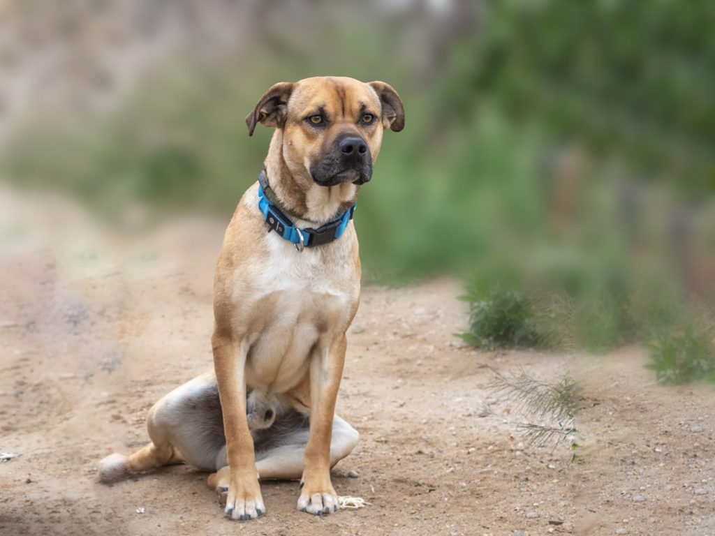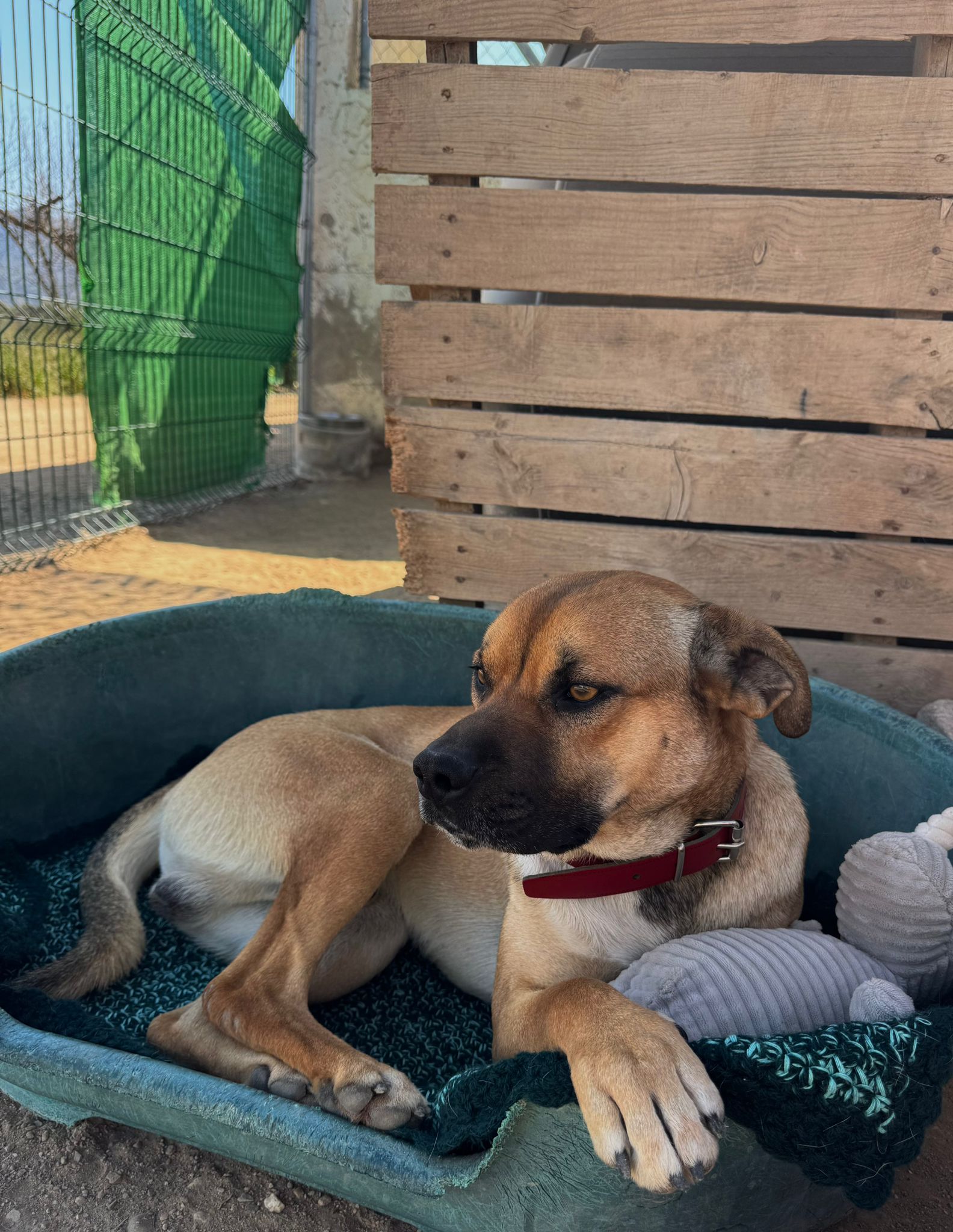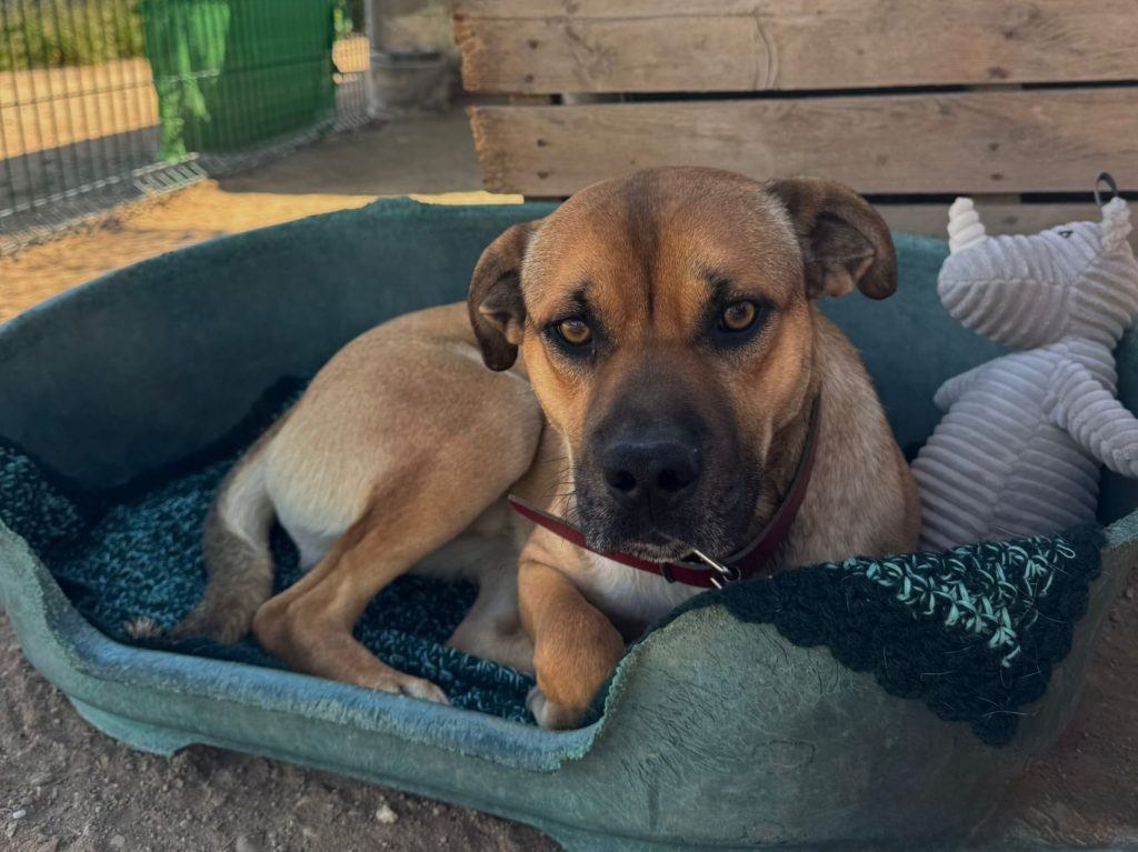 Buster is een middelgrote hond aan de kleine kant en pas twee jaar oud. Een zachtaardige ziel met een groot hart. Hij is ontzettend vriendelijk, dol op mensen en geniet van elke beetje aandacht dat hij krijgt — alsof hij de liefde probeert in te halen die hij waarschijnlijk nooit echt heeft gekend.