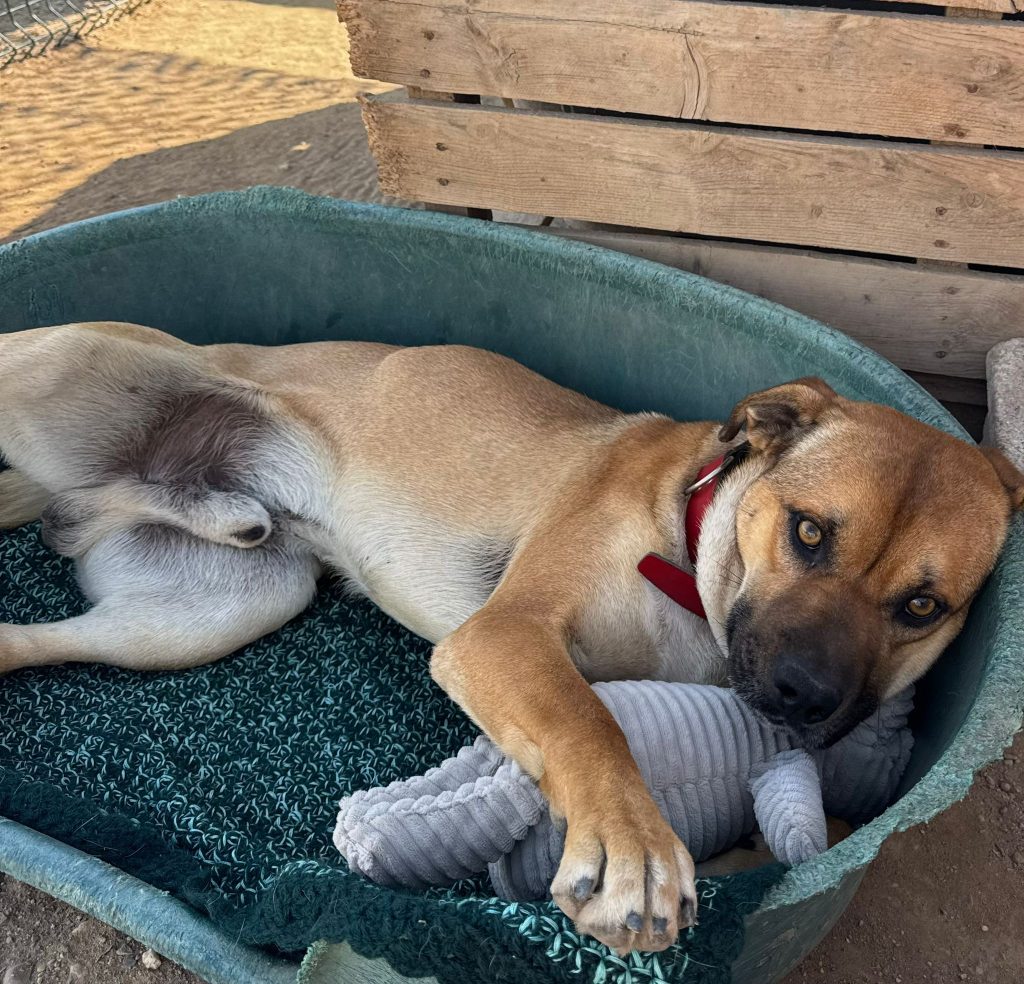 Buster werd in de bergen gevonden samen met zijn trouwe vriendin Betty. Betty was hoogzwanger en samen probeerden ze daar te overleven — zonder veiligheid, zonder een warm bed. Kort nadat ze werden gered, gebeurde er iets moois: Betty beviel van tien prachtige puppy’s. Tien kleine wondertjes die nu veilig zijn.