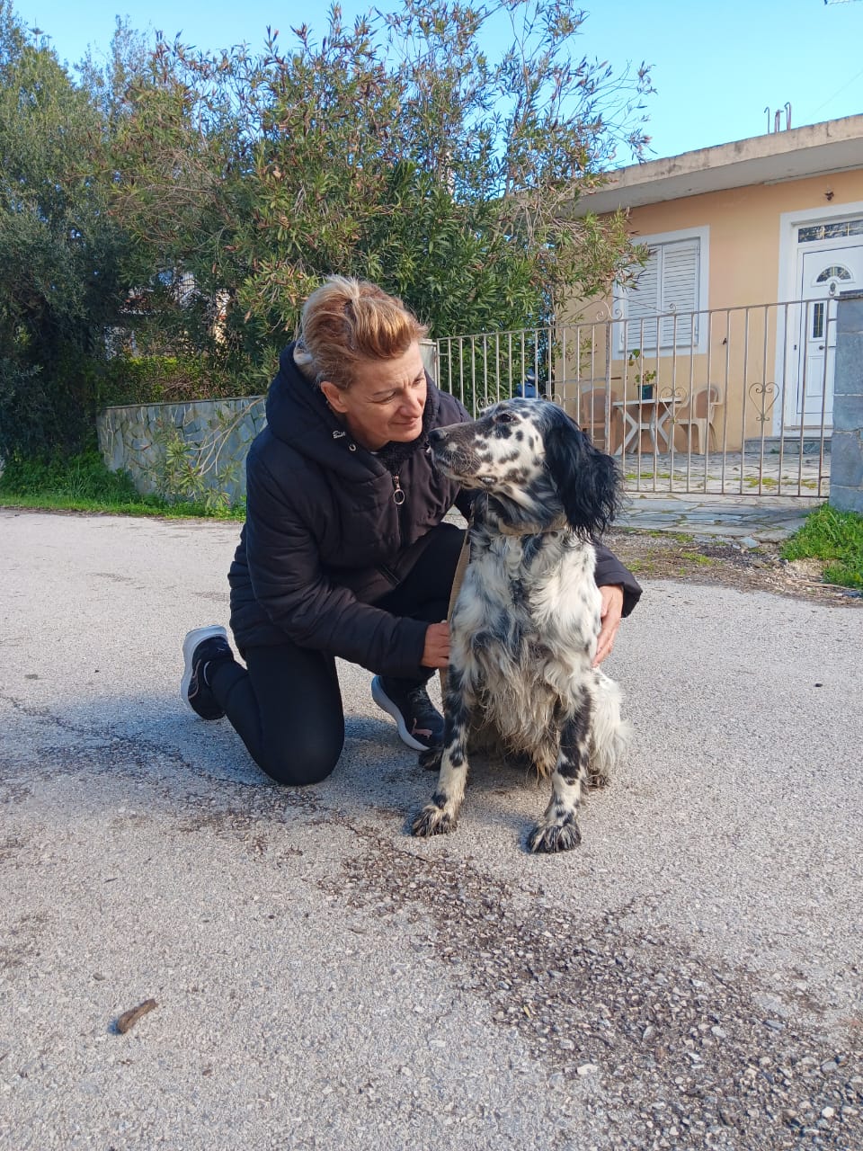 Kostas is een heel lieve jachthond. Onze collega’s hebben hem vernoemd naar de aardige man die aanbood om hem op te vangen. Kostas is een jonge setter en hij zwierf dagenlang rond op de drukste weg van Zakynthos. Het is de enige snelweg waar auto’s meestal harder dan 50 km per uur rijden. Veel mensen zagen Kostas dagelijks heen en weer lopen, totdat hij de winkel van een aardige man binnenliep. Hij besloot om hem op te vangen, vanuit zijn medeleven en natuurlijk met de hulp en aanmoediging van zijn lieve vrouw. Niet veel dagen nadat zijn dochter een jonge hond buiten haar tuin had gezien, dit was Eleni. Niemand miste haar, het was gewoon weer een achtergelaten puppy… Eleni en Kostas vermaken zich samen heel goed. We hopen dat ze allebei hun definitieve gezin zullen vinden om de cirkel van liefde en toewijding compleet te maken.