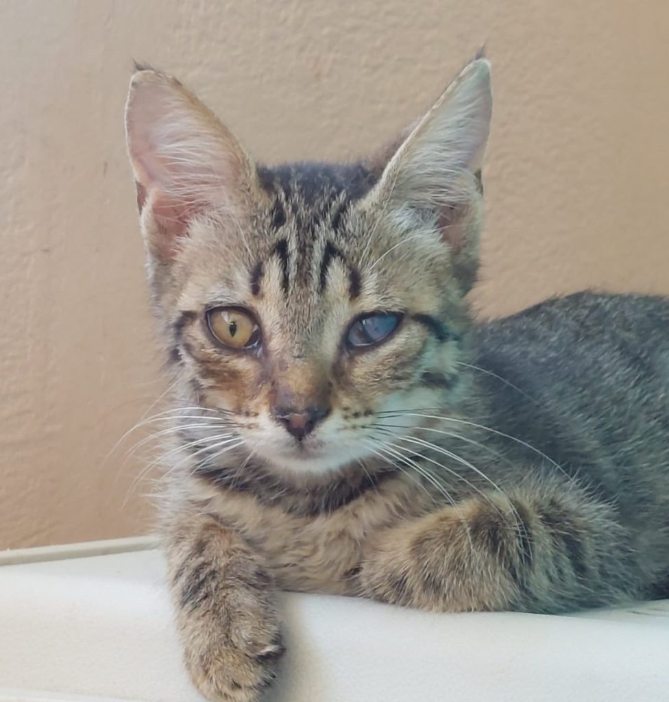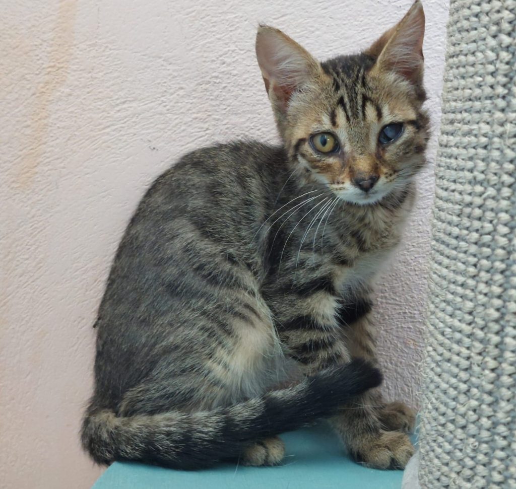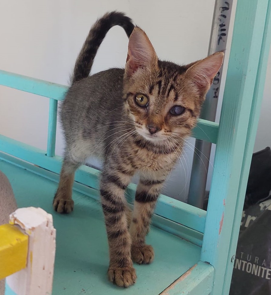 Ik ben nog steeds een beetje verlegen en schuchter, maar ik leer dat mensen aardig kunnen zijn. Ik houd van rustige plekjes, zachte stemmen en de wereld bekijken vanaf mijn favoriete hoge planken. Mijn linkeroog heeft op dit moment behandeling nodig, maar ik ga er als een kampioen mee om.