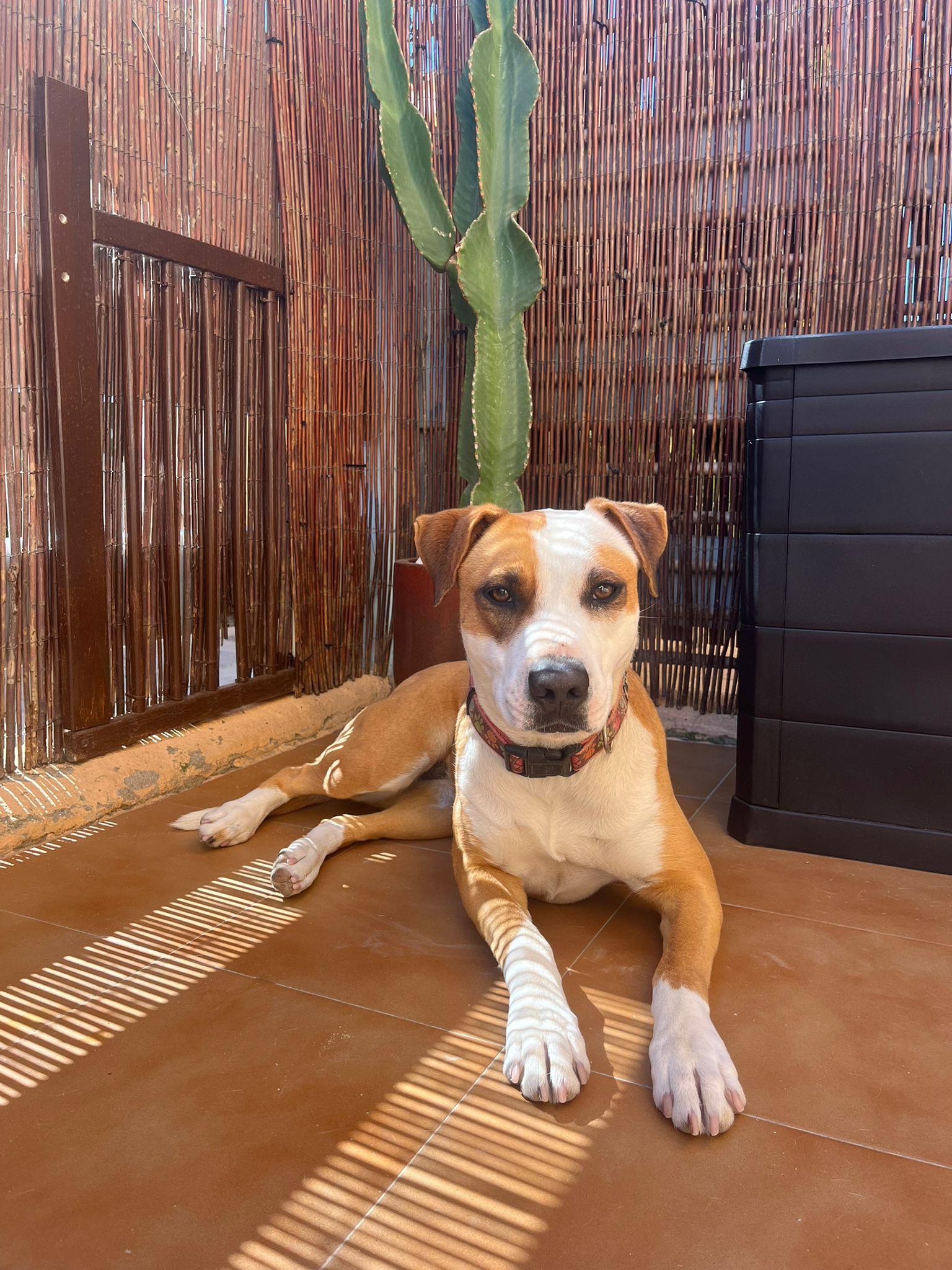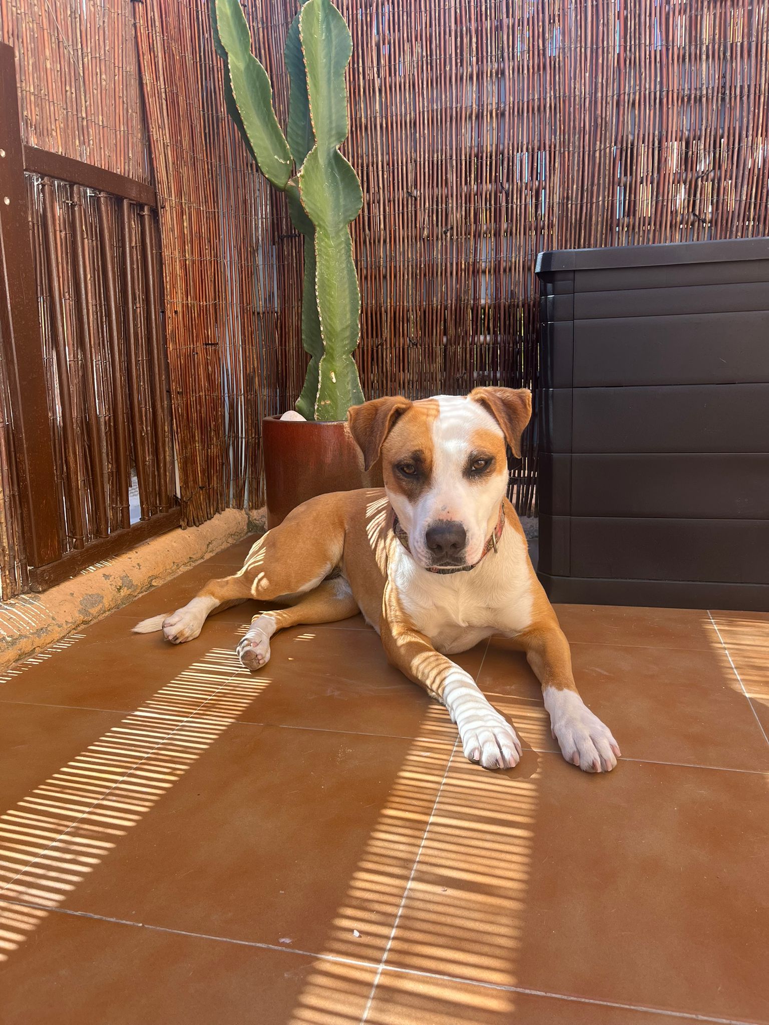 Dit is Dasha, ze is in 2024 in Spanje geadopteerd, maar helaas willen ze haar nu niet meer. Dasha is super lief, een kruising. Ze kan goed met kinderen en honden omgaan, maar niet met katten. Ze is zindelijk in huis.