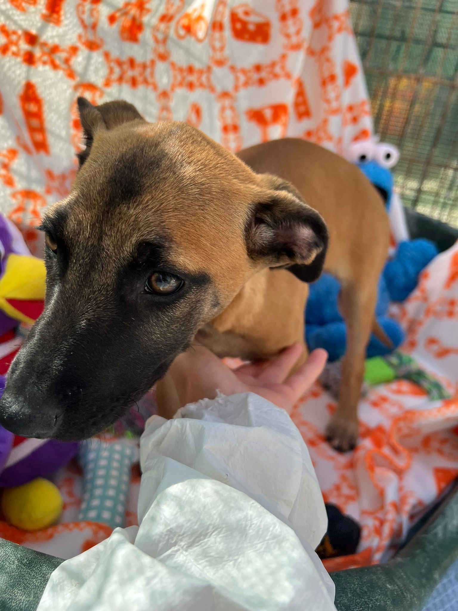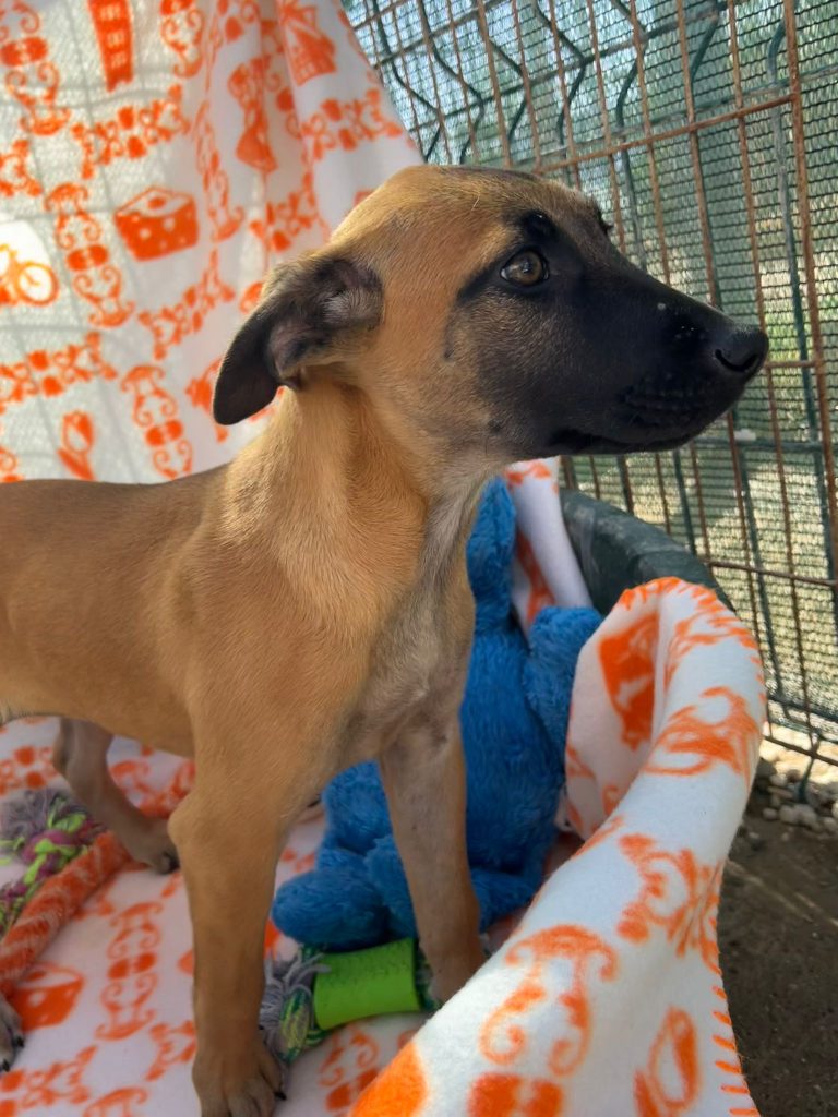 Onze collega’s kregen een paar telefoontjes dat een moederhond met zes puppy’s op een weg liep. Het was duidelijk dat er iets aan de hand was met haar rechter achterpootje. Ze was heel lief en vriendelijk. De moeder werd Senna genoemd en is hoogstens 1 jaar jong.