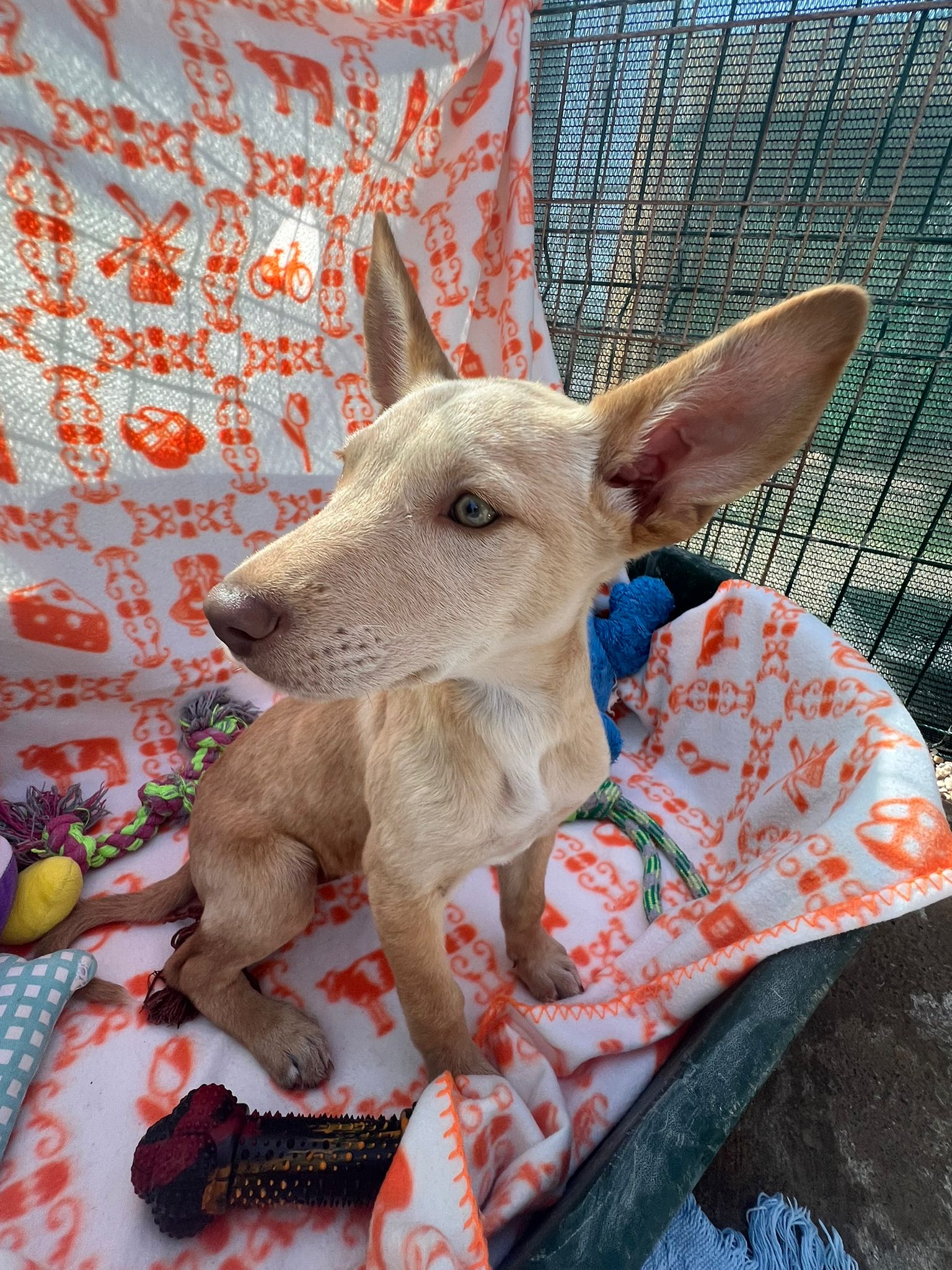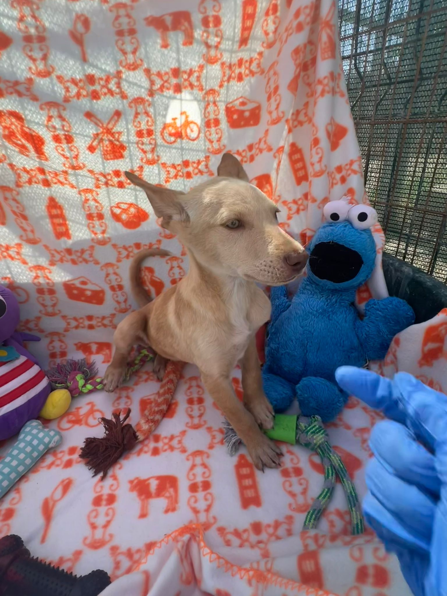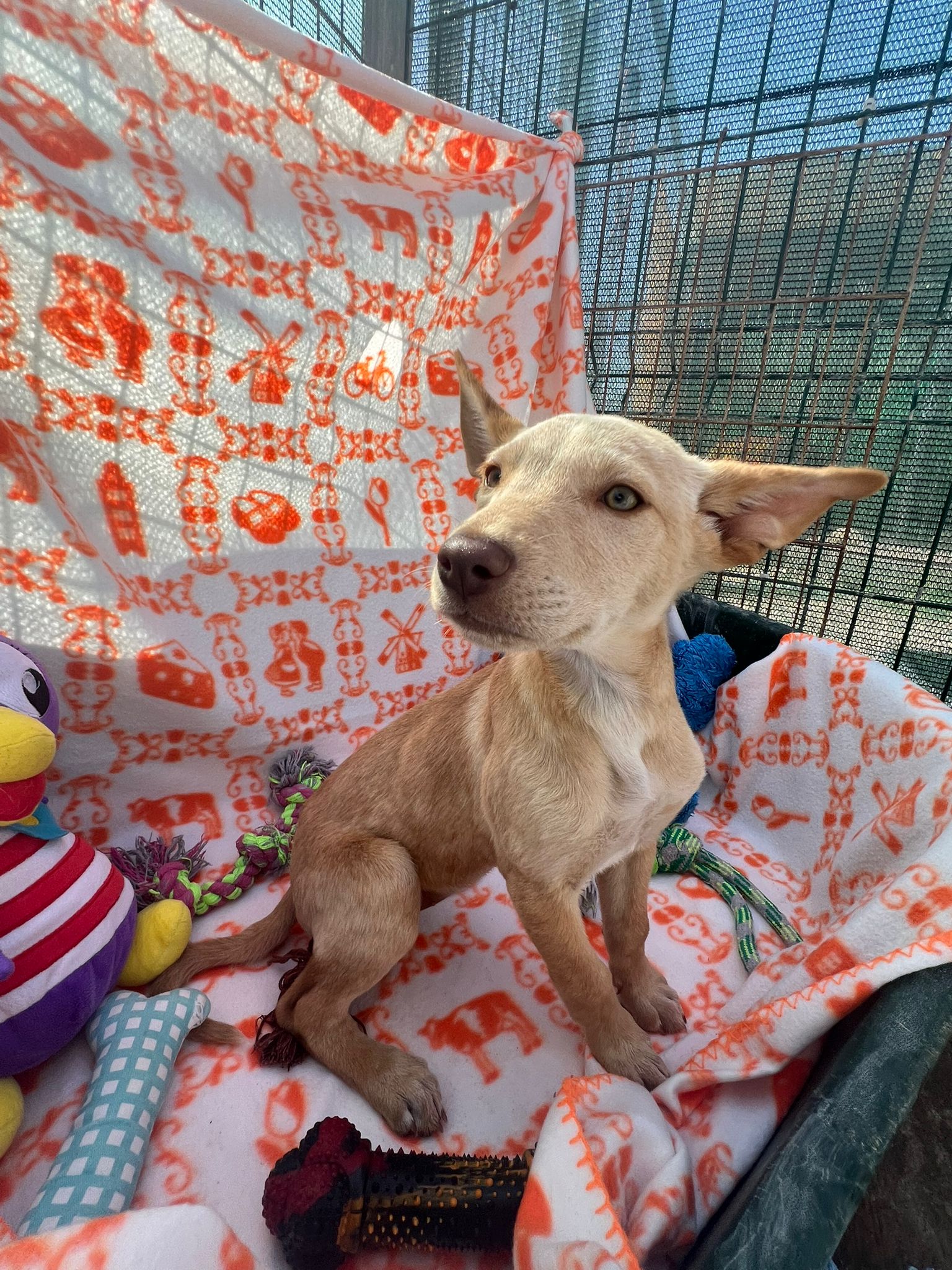 Onze collega’s kregen een paar telefoontjes dat een moederhond met zes puppy’s op een weg liep. Het was duidelijk dat er iets aan de hand was met haar rechter achterpootje. Ze was heel lief en vriendelijk. De moeder werd Senna genoemd en is hoogstens 1 jaar jong.