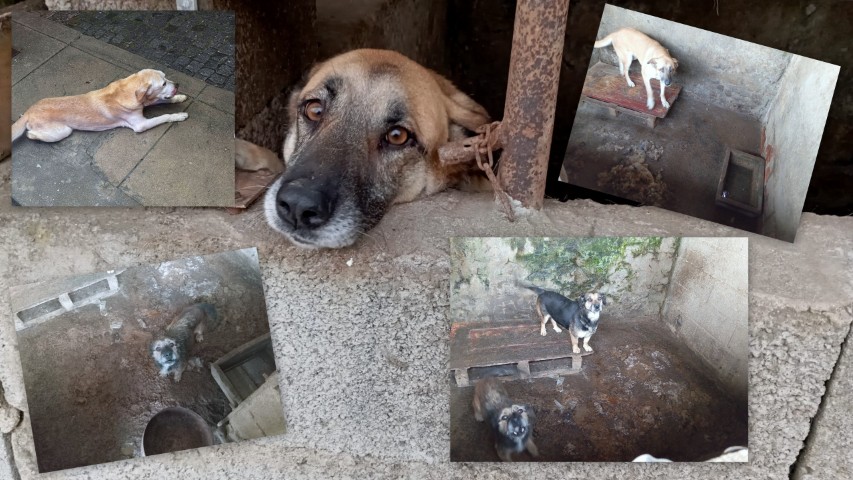 Bijna dagelijks worden ze geconfronteerd met de verdrietige omstandigheden waarin honden en met name gedumpte honden in de bossen van noord Portugal worden achtergelaten en/of mishandeld c.q. niet verzorgd worden door geldgebrek of als kettinghond gehouden worden (wat wel illegaal is maar hardnekkig blijft bestaan). Tel daarbij op de zwerfhonden, het ontbreken van castratie en de jaarlijkse gevonden nestjes, (bijna voor ) dood achtergelaten in plastic zakken of bij/in de vuilnisbak en het bittere plaatje is compleet. En tot overmaat van ramp worden daarnaast grote roedels bestaande uit expres uitgehongerde Podenco’s (zodat ze beter jagen) gebruikt door Spaanse jagers, tijdens en na het jachtseizoen, pal over de grens in Portugal uit de auto gegooid. Dit omdat de dader dan niet te achterhalen valt. Als de honden niet langer “functioneren” of omdat men er inmiddels al teveel heeft. Deze hondjes hebben in de bossen geen enkele kans, zijn inmiddels doodsbang voor mensen en heel moeilijk te vangen. Niemand wil ze hebben en de weinige asielen zitten stampvol. En eerlijk gezegd, bijna niemand heeft ook echt geld op het platteland in het noorden om deze honden of andere honden een behoorlijk dierwaardig bestaan te geven. In de steden is de situatie anders.